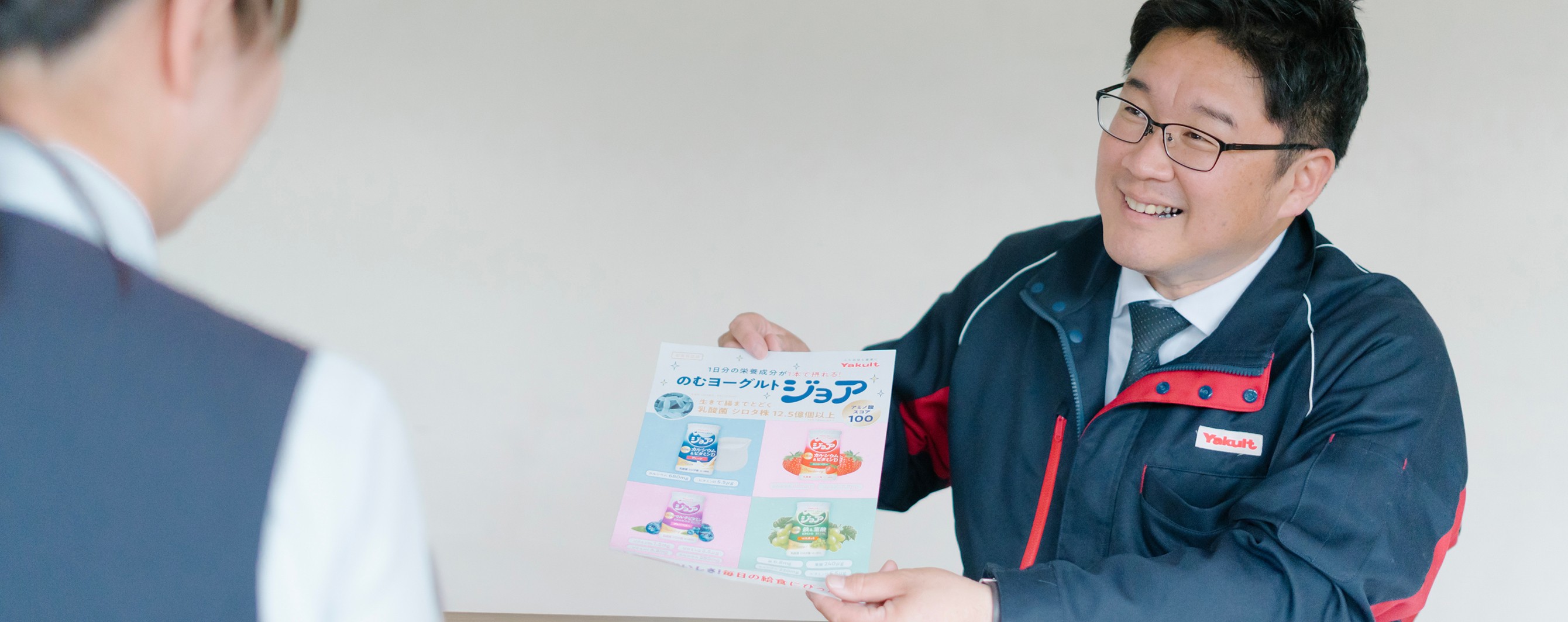 お店で「若い頃からずっとこのヤクルト、おかげさまで元気」といったお客さまや「健康維持に飲みたい」といったお声をいただけることが何よりの喜び。私たちは、単に商品を納めるだけでなく、関わるすべての皆さまから必要とされる活動を目指しています。